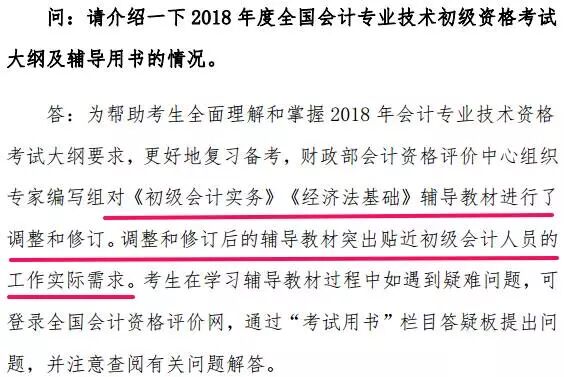 根据财政部10月25日发布2018初级会计职称考试有关问题答记者问内容获悉,当记者问到2018年初级会计职称考试大纲及辅导用书情况时。财政部会计司、会计资格评价中心有关负责人表示财政部会计资格评价中心组织专家编写组对《初级会计实务》、《经济法基础》辅导教材进行了调整和修订,在此次调整和修订后初级会计职称教材将更加贴近初级会计人员工作的实际需求。
